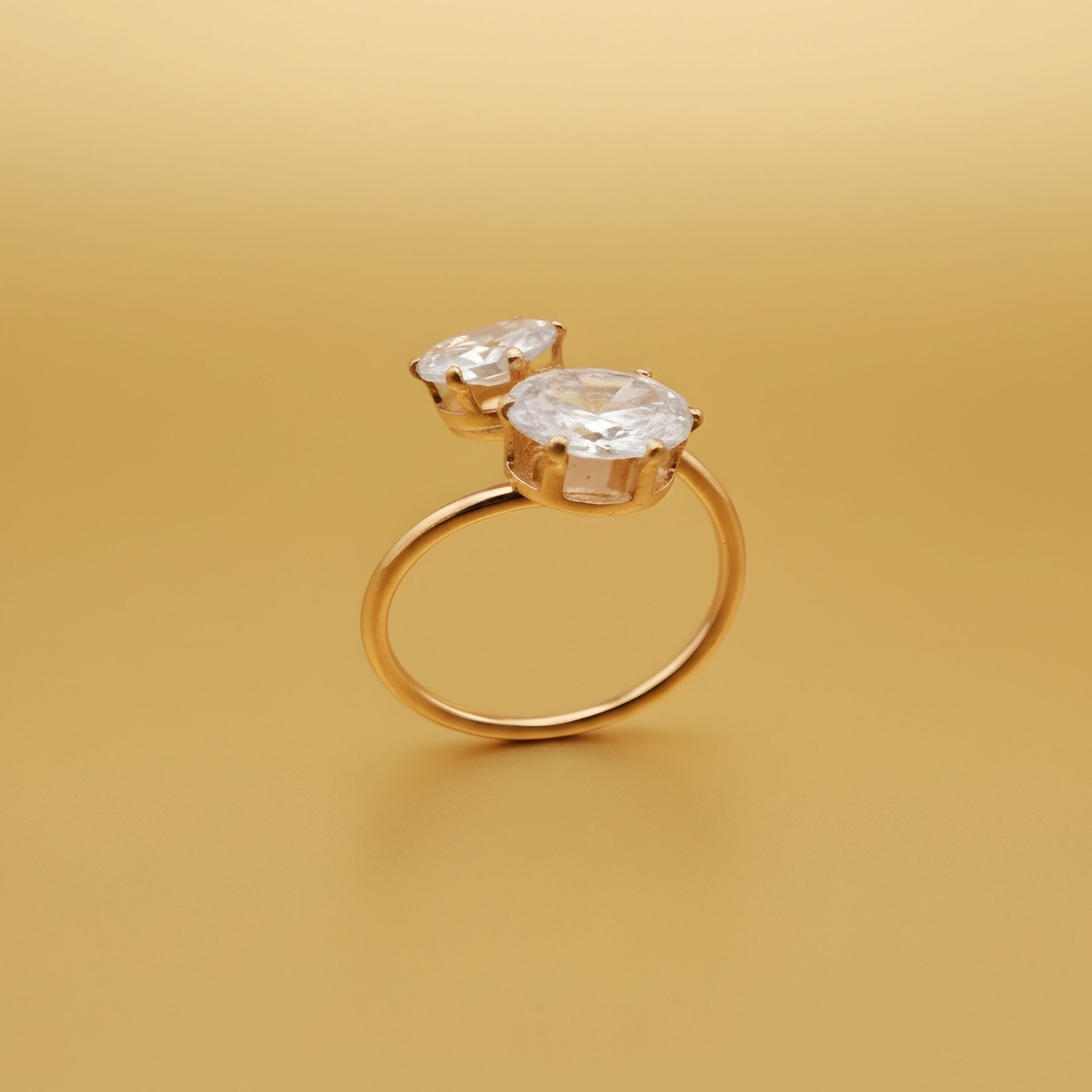CZ, Cubic Zirconia, Gold Plated, Fashion Ring, Costume Jewelry, Adjustable Ring, Toi et Moi, Diamond Simulant.